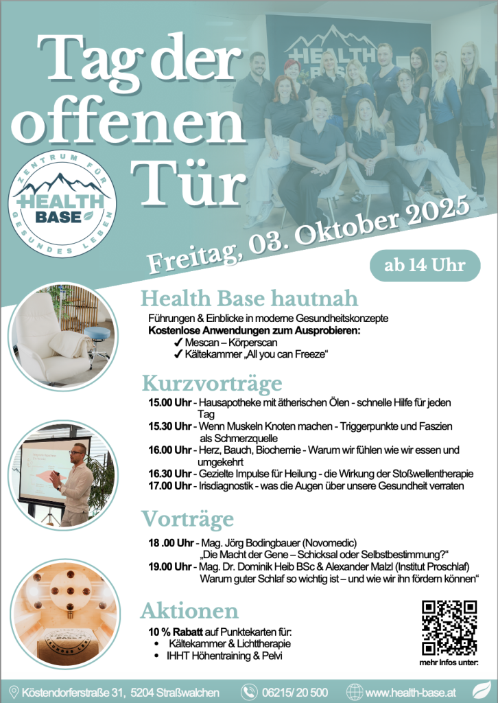 In der Health Base fühlt man sich richtig gut aufgehoben. Tolles Team, angenehme und positive Location und man fühlt sich nicht wie in einem sterilen Warteraum. 🙂 Die Ärztin Vera ist wirklich der Wahnsinn, denn sie nimmt sich Zeit und behandelt einen nicht nur, sondern sucht nach der Ursache und hilft einem auch präventiv vorzubeugen. Ich hab alle Biohacking-Tools schon des Öfteren probiert und bin begeistert. Die Kältekammer ist wirklich zu empfehlen. Auch ein großes DANKE an Selina. Nach meinem Sturz auf die Schulter arbeiten wir gerade dran, dass wieder alles so funktioniert wie es soll. Dafür haben unter anderem die Magnetfeld- und Stoßwellentherapie angewandt. 🙂